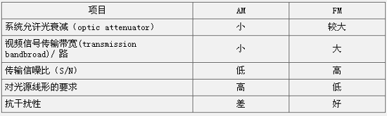 (1)传统的模拟光端机所采用的技术有两种:FM和AM。早期各大公司的光纤传输设备大多采用AM技术,而随着时间的推移,FM技术已经成为市场的主流,下表将AM与FM的特点作以定性比较: