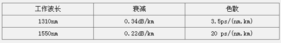 那么实际传输测试时,L£2.6km,由此可见,决定传输距离的主要因素是多模光纤的带宽。 (2) 单模传输设备所采用的光器件是LD,通常按波长可分为850nm和1300nm两个波长,按输出功率可分为普通LD、高功率LD、DFB-LD(分布反馈光器件)。单模光纤传输所用的光纤最普遍的是G.652,其线径为9微米。不同波长的光在G.652光纤上传输特性见下表